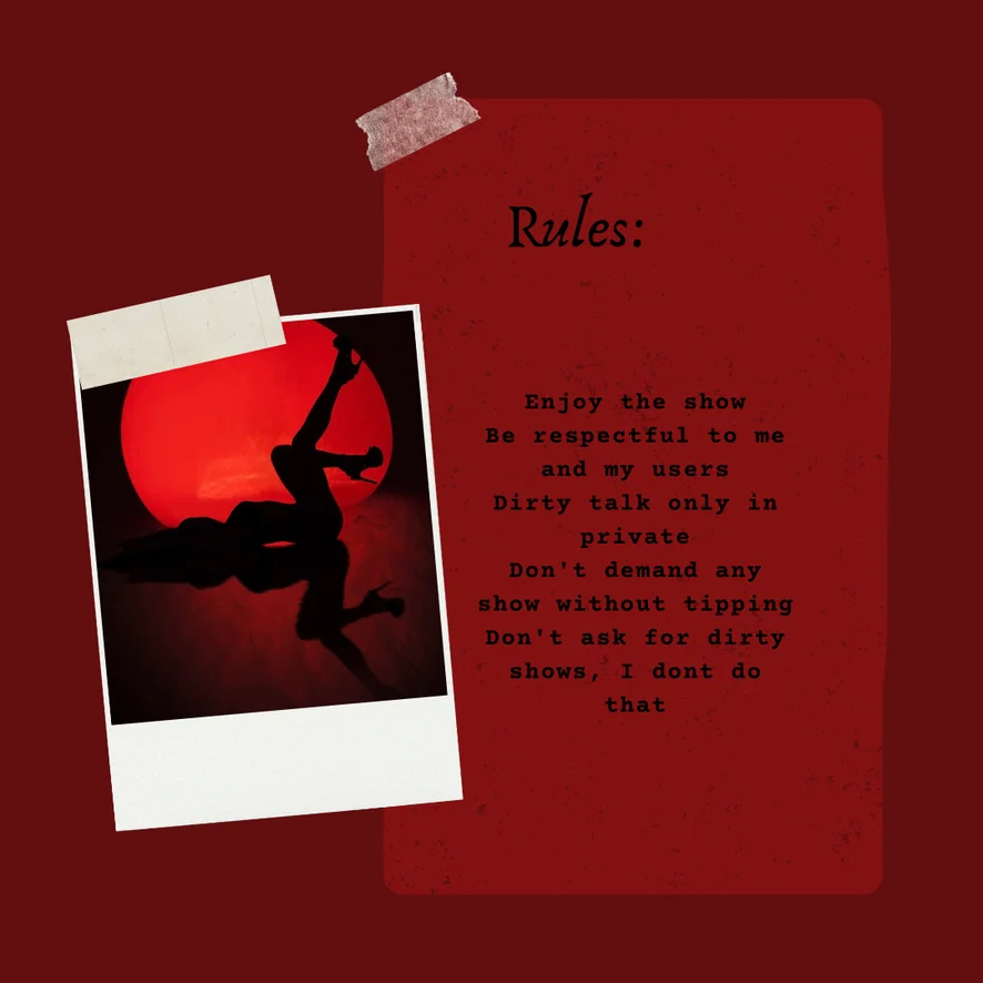 ท่าหมา, อาเฮะกาโอะ, เต้นยั่ว, ทเวิร์ก, โบลว์จ๊อบ, ช่วยตัวเอง, ใช้หน้าอก, ตีก้น, ร่องอูฐ, ใช้นิ้ว, ระบำเปลื้องผ้า, โชว์ใต้กระโปรง, การให้คะแนนเจ้าโลก, เฟติชเท้า, ดีปโทรต, คุยเรื่องลามก, วับๆ แวมๆ, เล้าโลมด้วยเท้า, โชว์น้ำมัน, ฮาร์ดคอร์